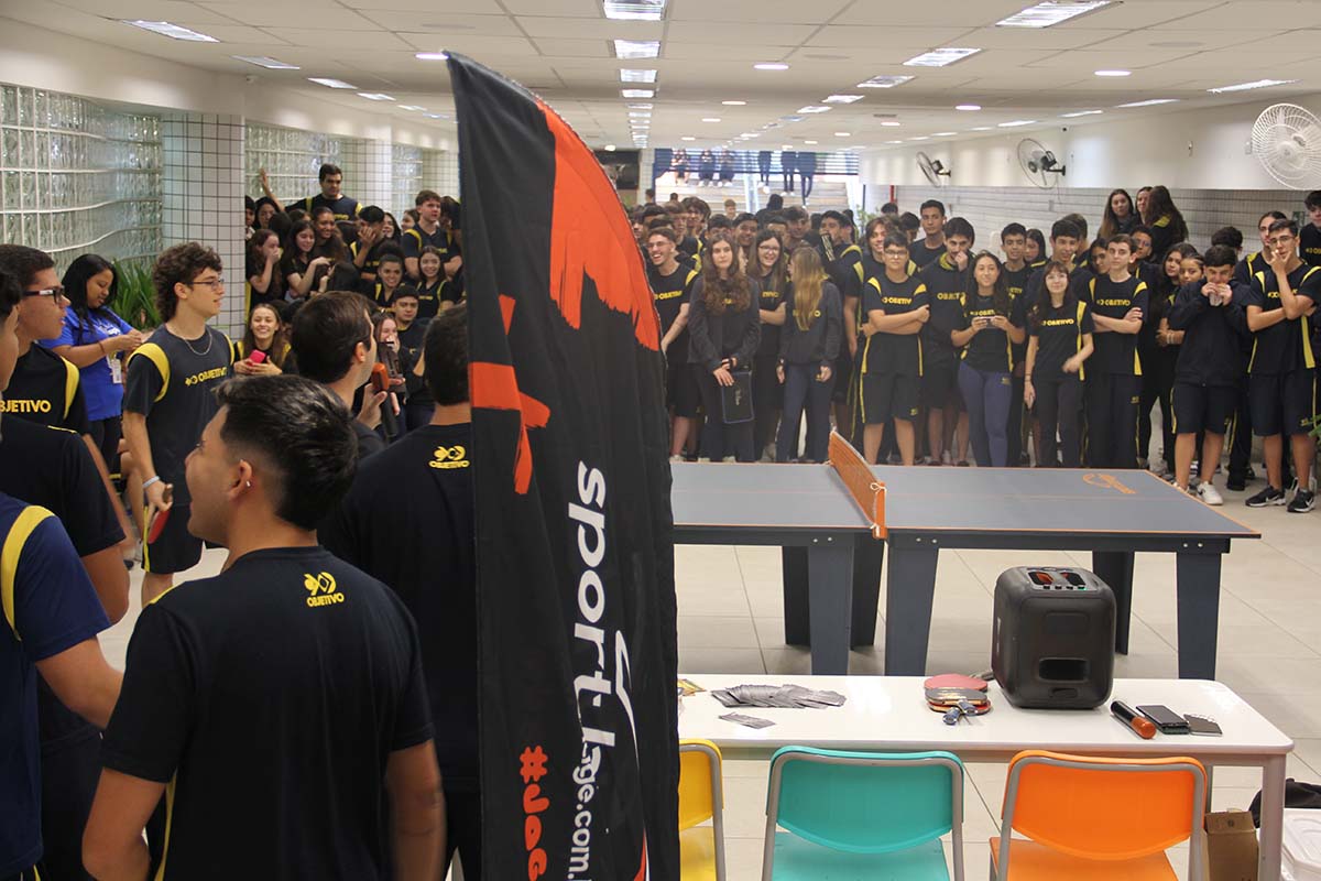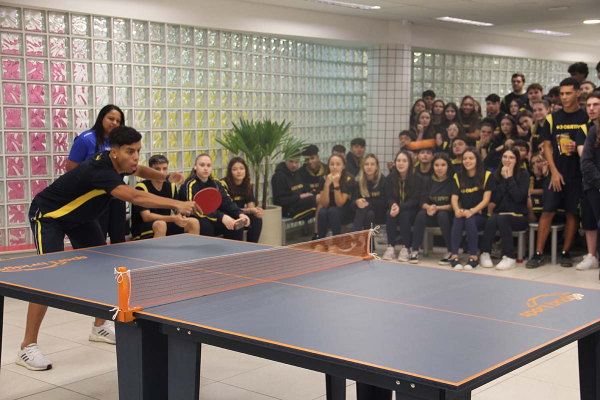 Imagine a cena: euforia no ar, alunos compenetrados, olhos fixos na mesa de ping-pong e a vontade de vencer um desafio.