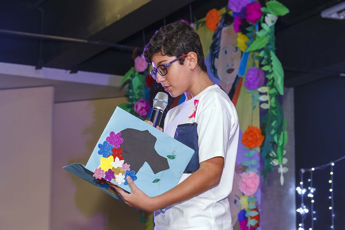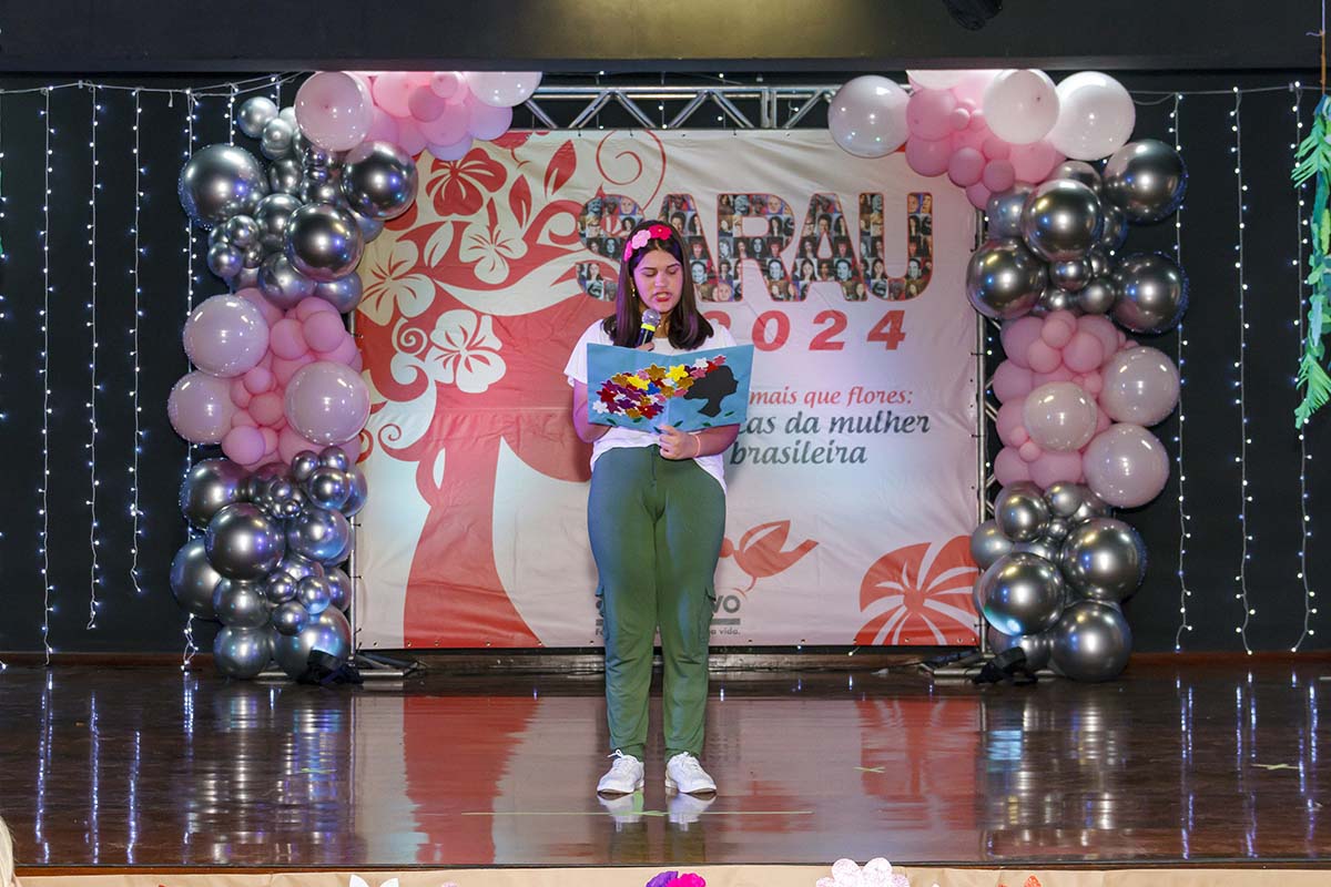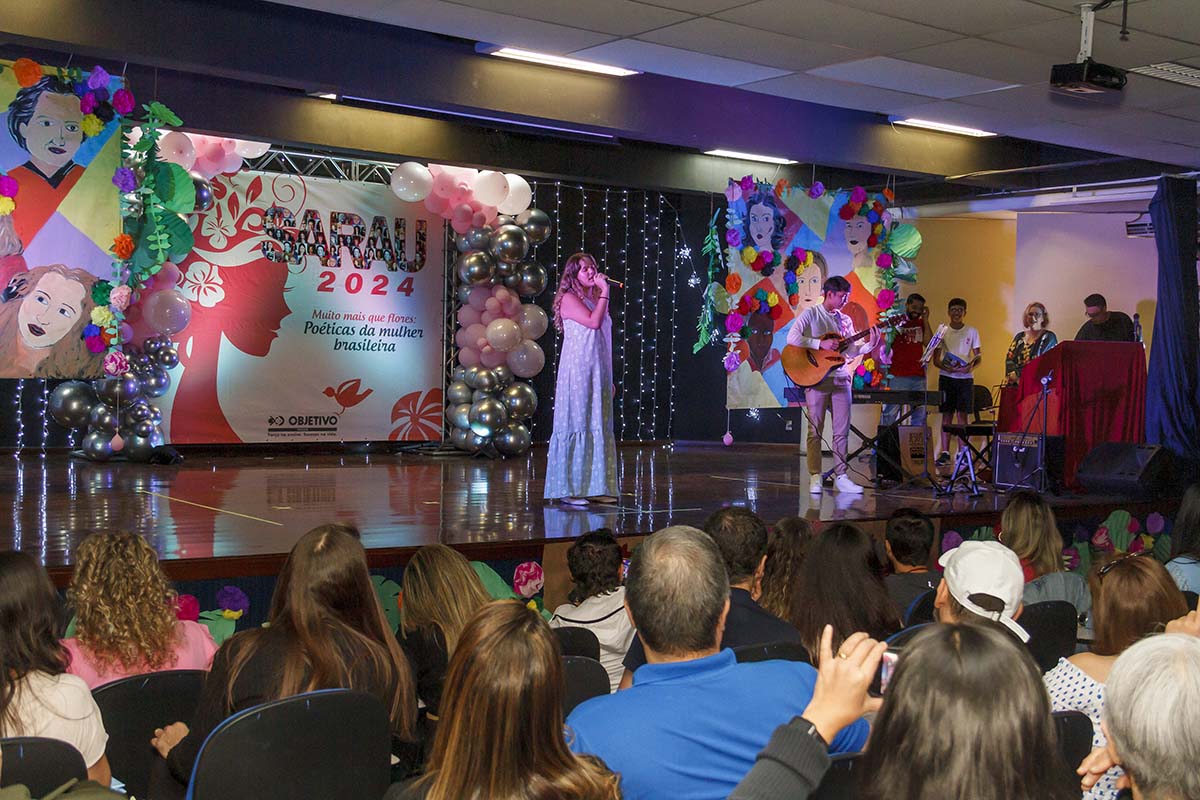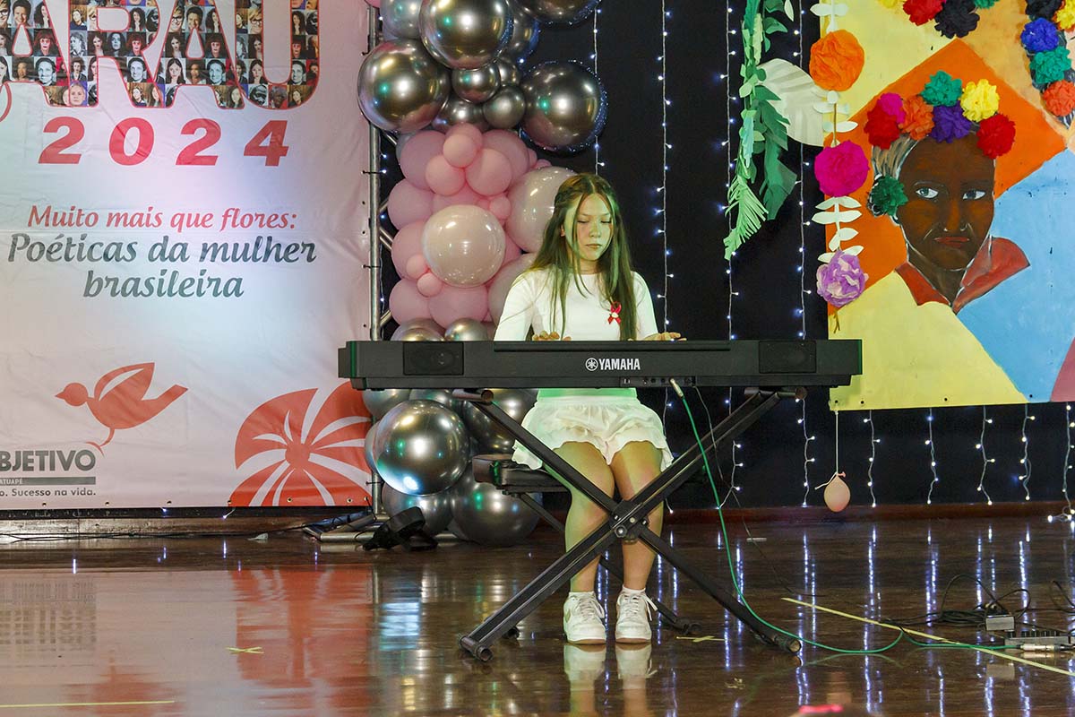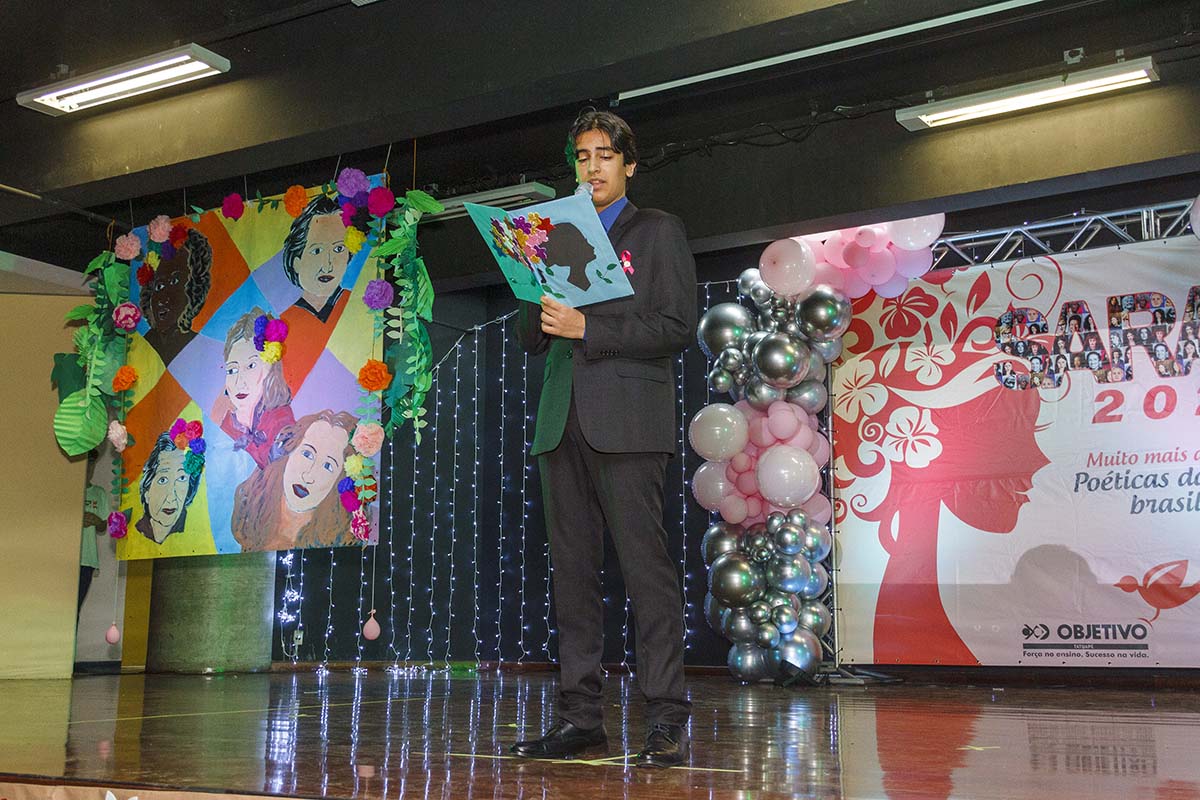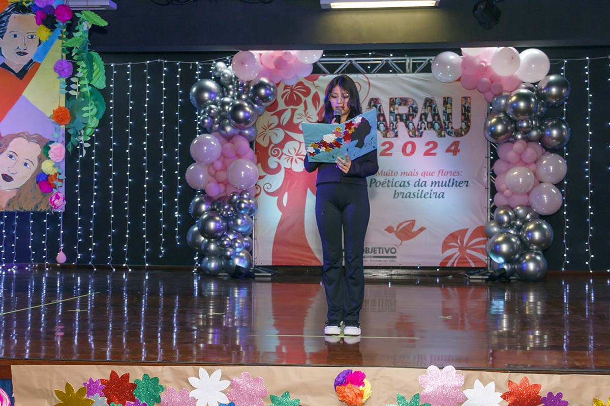 Os alunos da nossa escola participaram, no sábado, dia 5/10, de um inspirador sarau com o tema “Muito Mais que Flores: Poéticas da Mulher Brasileira”. Neste evento, eles exploraram a riqueza da produção literária feminina no Brasil, apresentando poesias, músicas e performances que destacaram a força e a sensibilidade das mulheres brasileiras. Foi um momento de aprendizado e reflexão, em que nossos estudantes puderam expressar-se artisticamente e aprofundar seu entendimento sobre questões de gênero, cultura e identidade. Estamos orgulhosos do envolvimento de nossos alunos nessa celebração da diversidade e da criatividade.