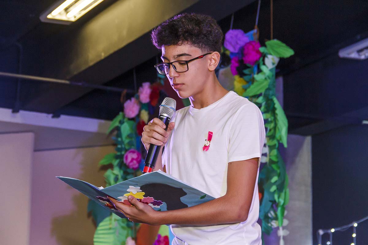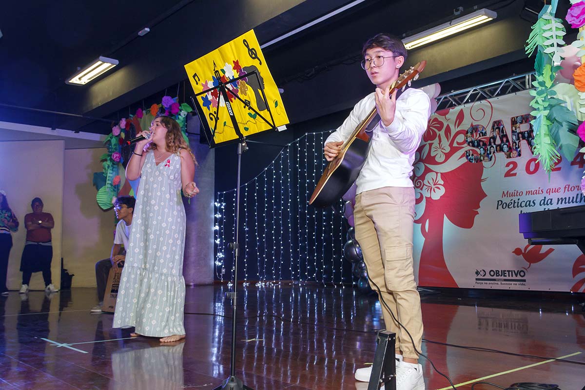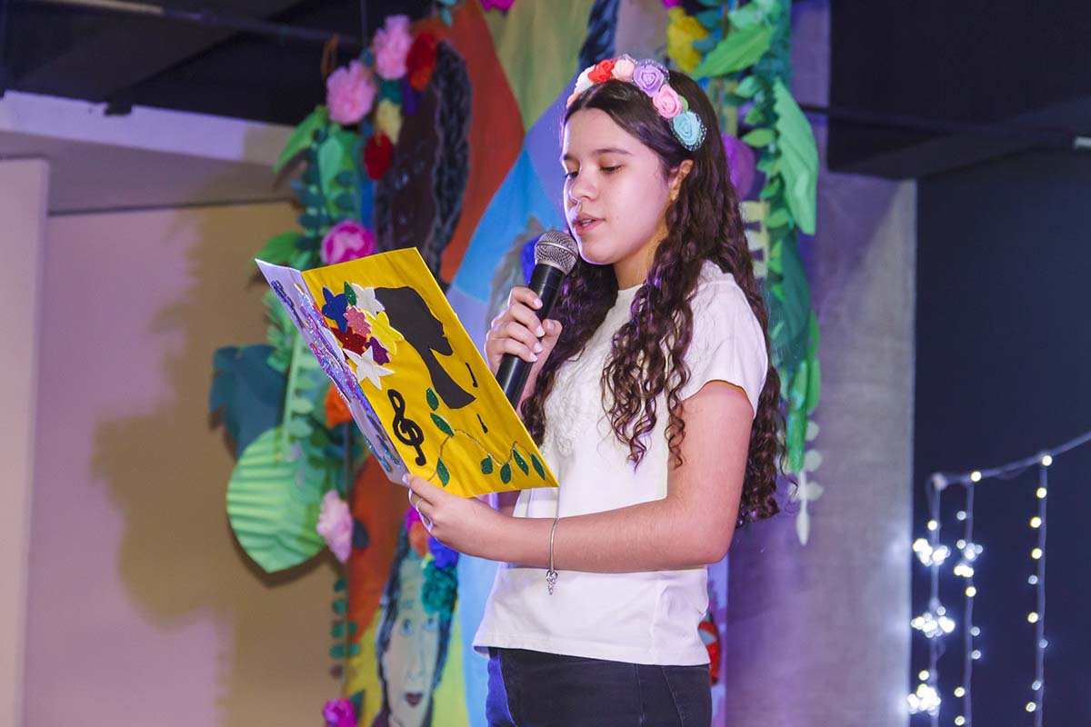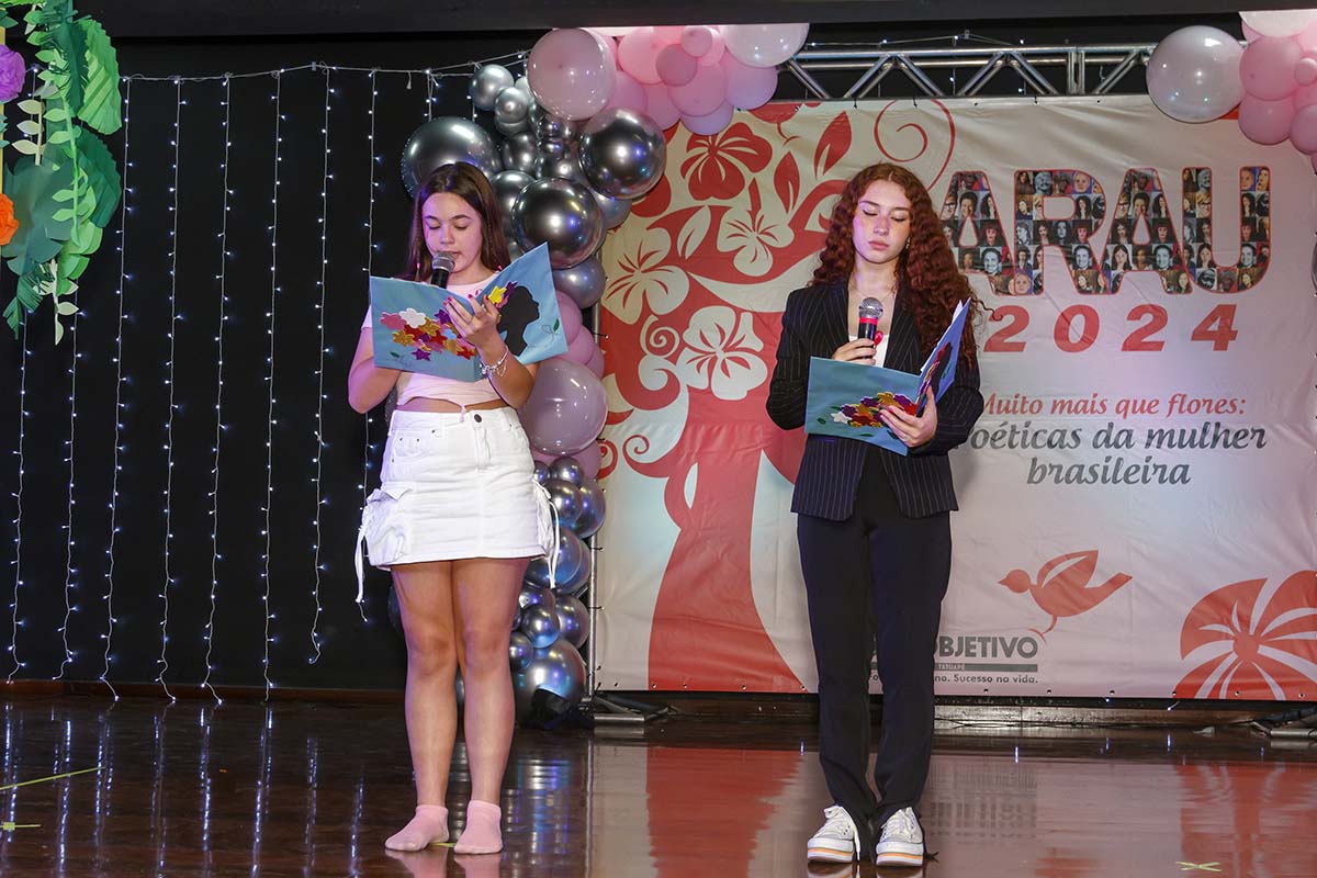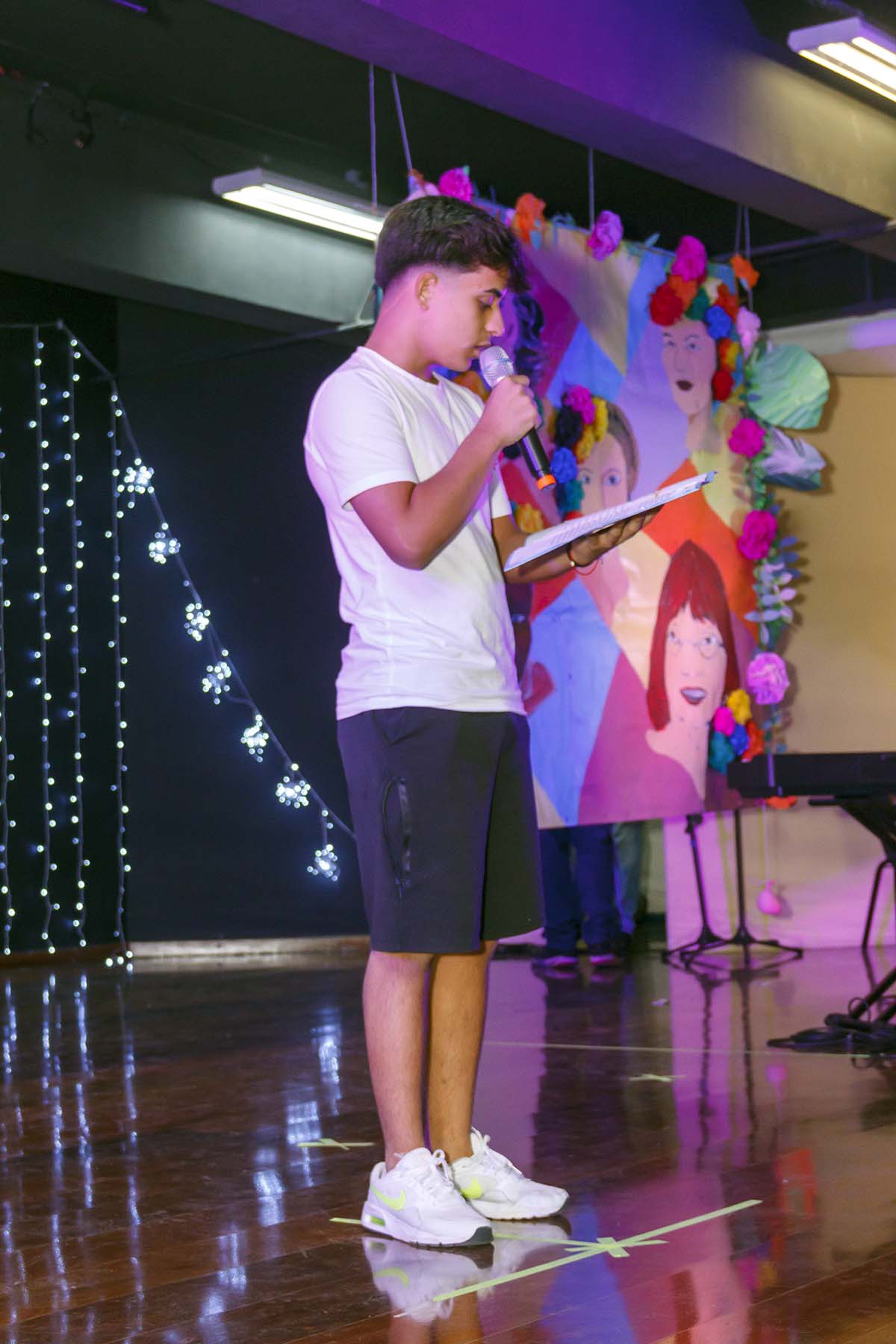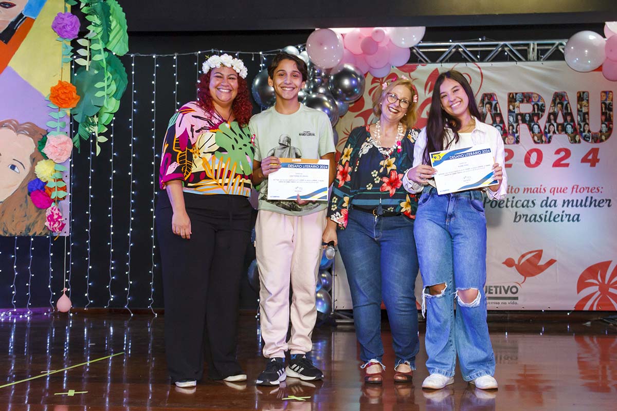 Os alunos da nossa escola participaram, no sábado, dia 5/10, de um inspirador sarau com o tema “Muito Mais que Flores: Poéticas da Mulher Brasileira”. Neste evento, eles exploraram a riqueza da produção literária feminina no Brasil, apresentando poesias, músicas e performances que destacaram a força e a sensibilidade das mulheres brasileiras. Foi um momento de aprendizado e reflexão, em que nossos estudantes puderam expressar-se artisticamente e aprofundar seu entendimento sobre questões de gênero, cultura e identidade. Estamos orgulhosos do envolvimento de nossos alunos nessa celebração da diversidade e da criatividade.