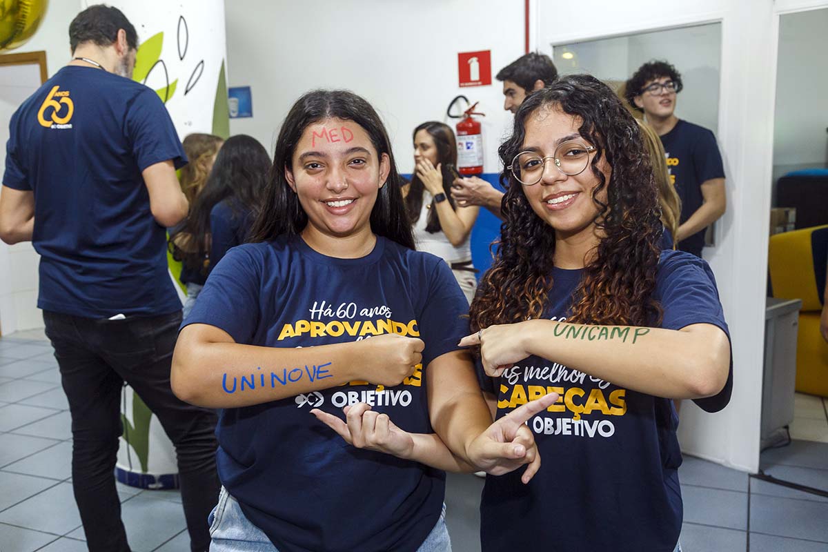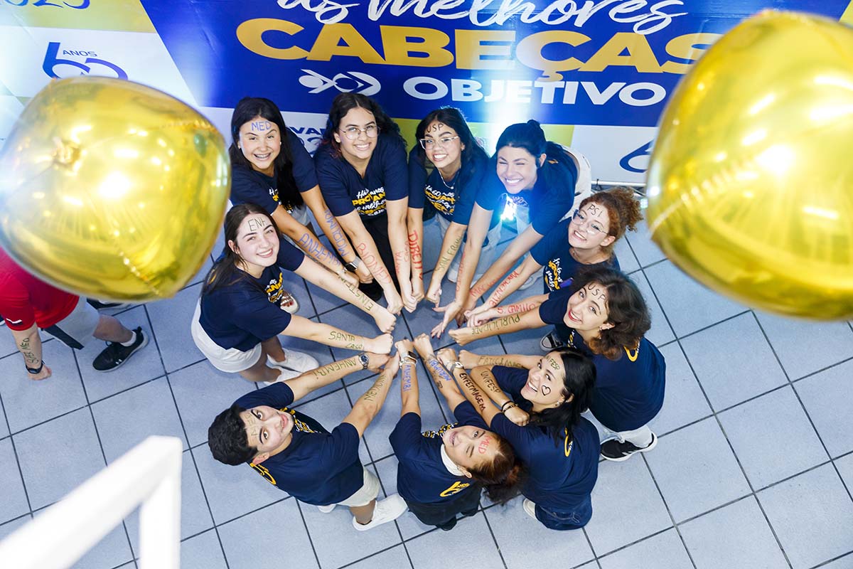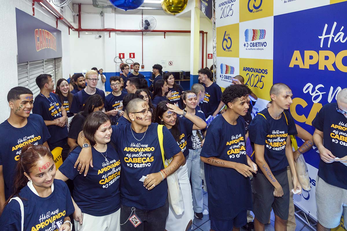 No dia 05/02, mais de 60 alunos das unidades Objetivo Ipiranga, Objetivo TatuapĂ© e Curso Objetivo TatuapĂ© se reuniram para celebrar suas conquistas em universidades de todo o paĂs â de Medicina a Artes CĂȘnicas, nas principais instituiçÔes do Brasil.