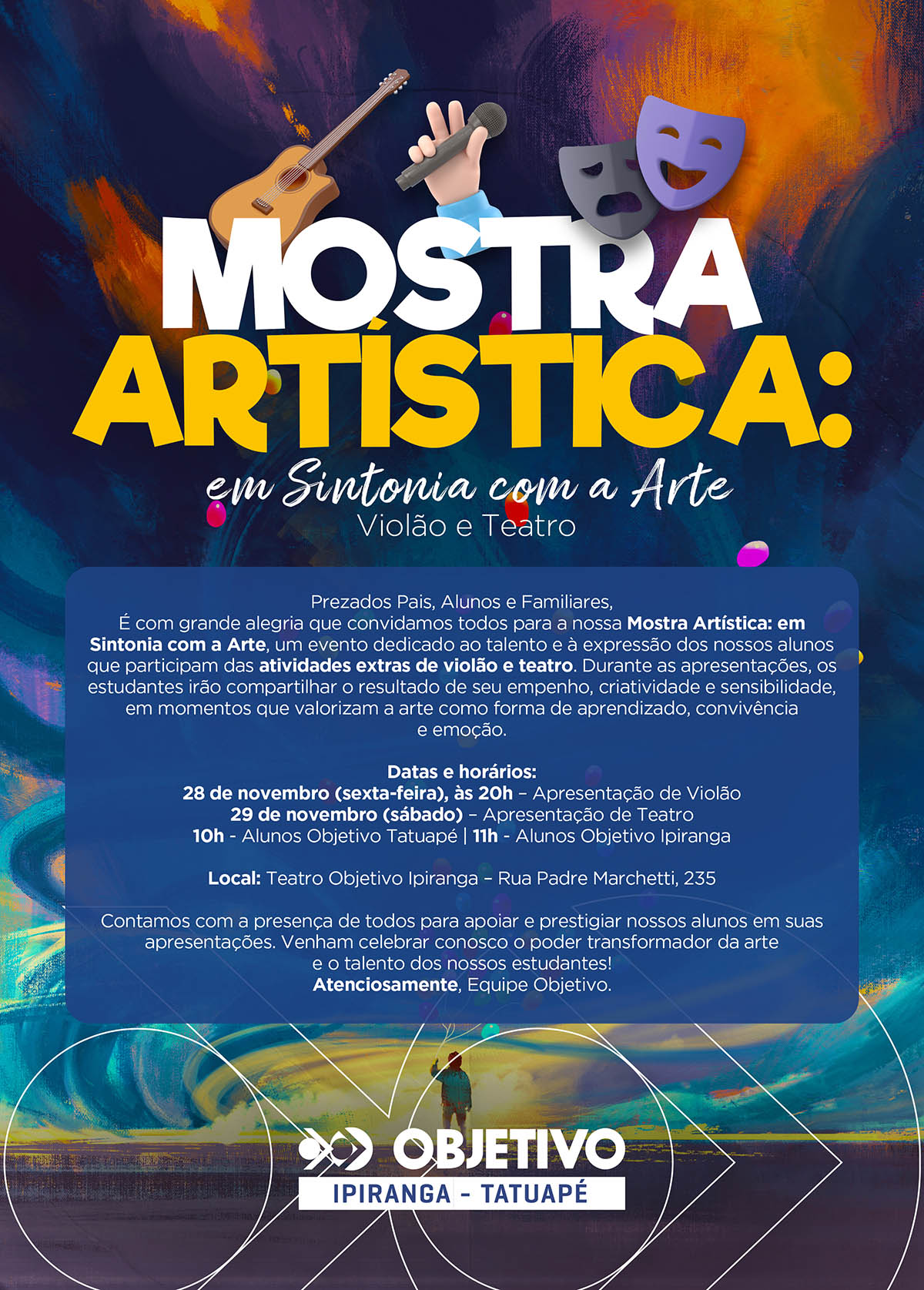 Evento dedicado ao talento e à expressão dos nossos alunos que participam das atividades extras de violão e teatro.